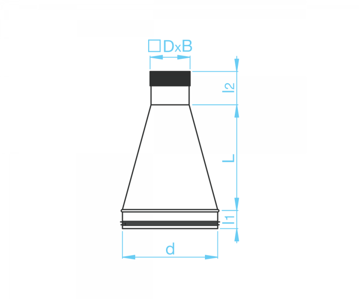- Slouží k přechodu mezi plochým kanálem a spiro potrubím, popř. hadicí.